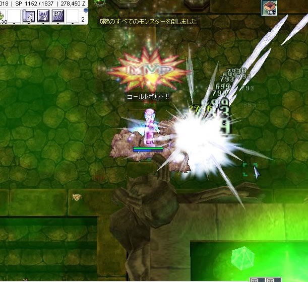 ちょうど階段下にレイド群がいましたので、寄せ集めオートスティ開始です。