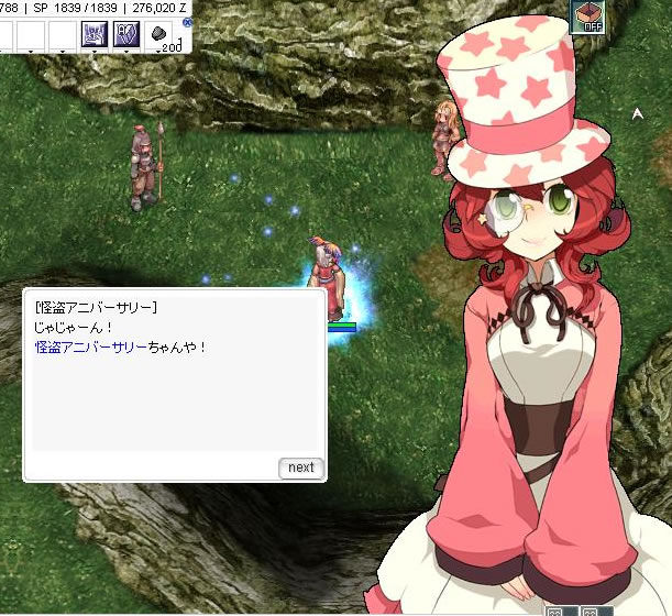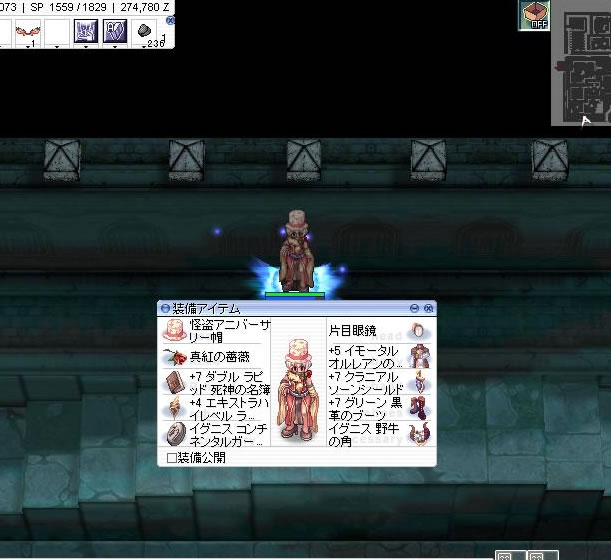 狩りの時間がなかったので、怪盗アニバ帽(通称:泥帽?)装備で
