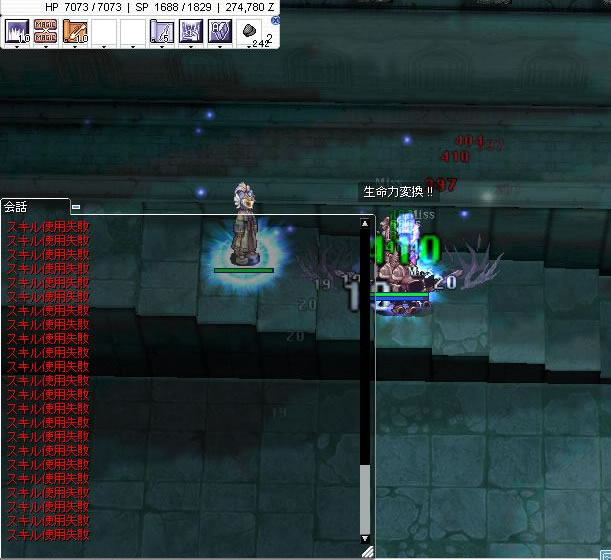 Dセシル死神で敵を殴っている時のmissの嵐が出ているような感じ