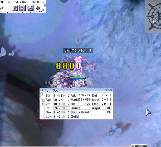 魔法攻撃時、一定確率で 5秒間キャスティングタイム - 50%、FLEE + 30。