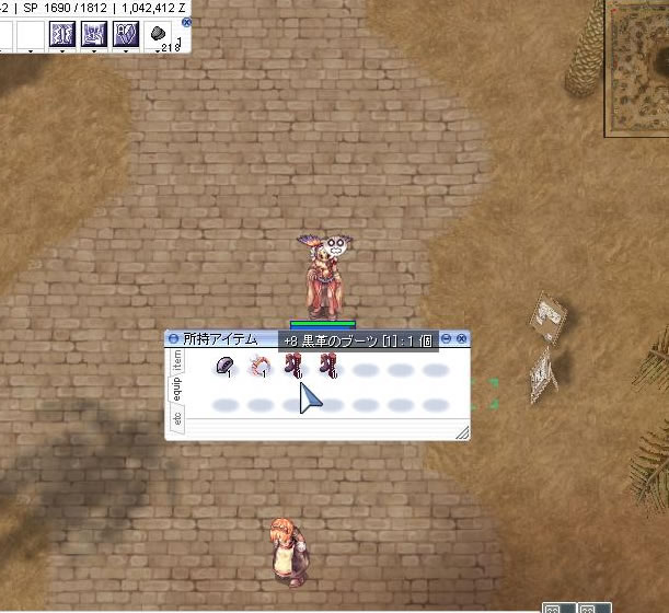 マジックコート[1]、さすらい狼の帽子[0]、魔力の書第一巻[1]